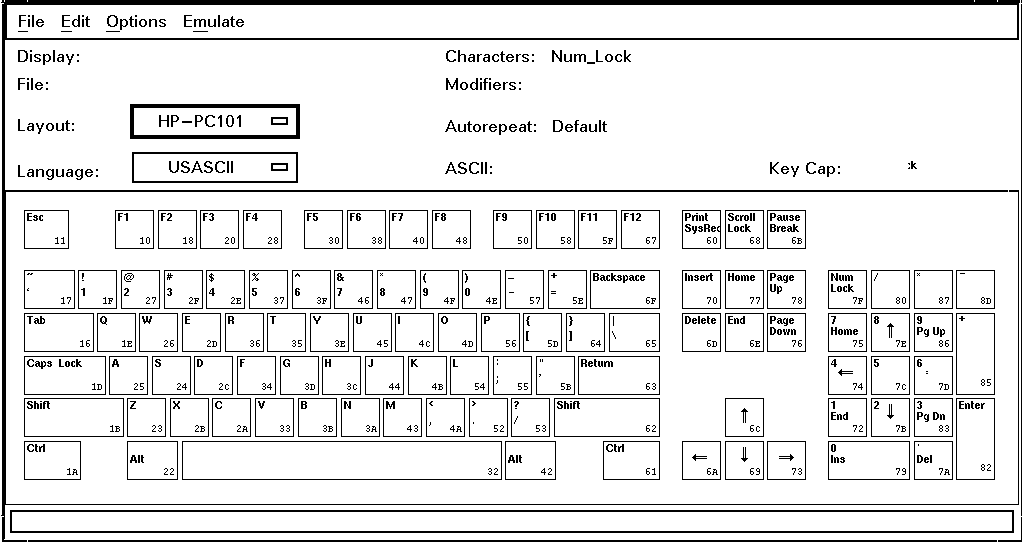The HP-HIL keyboard emulation on a PS/2 keyboard provides the following key mappings: