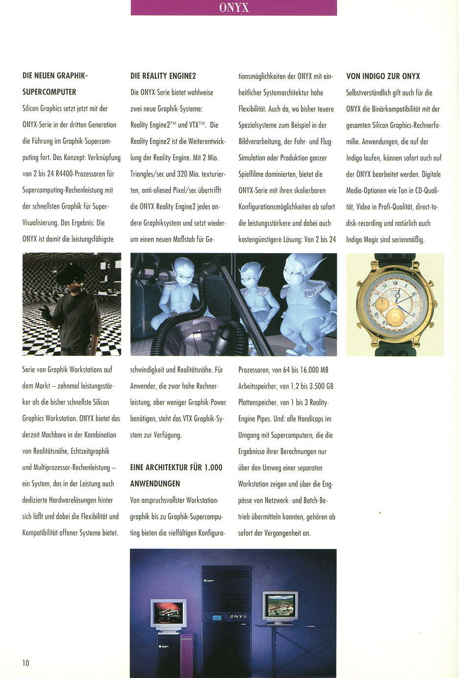 Of course SGI also had and still has very nice brochures. Here are scans of one of these, done by Gerhard Lenerz. The original catalogue is from about 1994 and has german description of the SGI systems of that time.