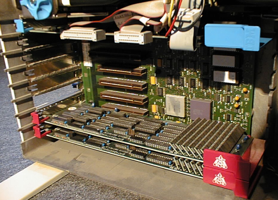 A closeup of the mainboard shows that IBM continued to use a CPU in the relatively expensive PGA case. Most other vendors at that time had already switched to the cheaper PLCC case (IBM did so with the 50Z).