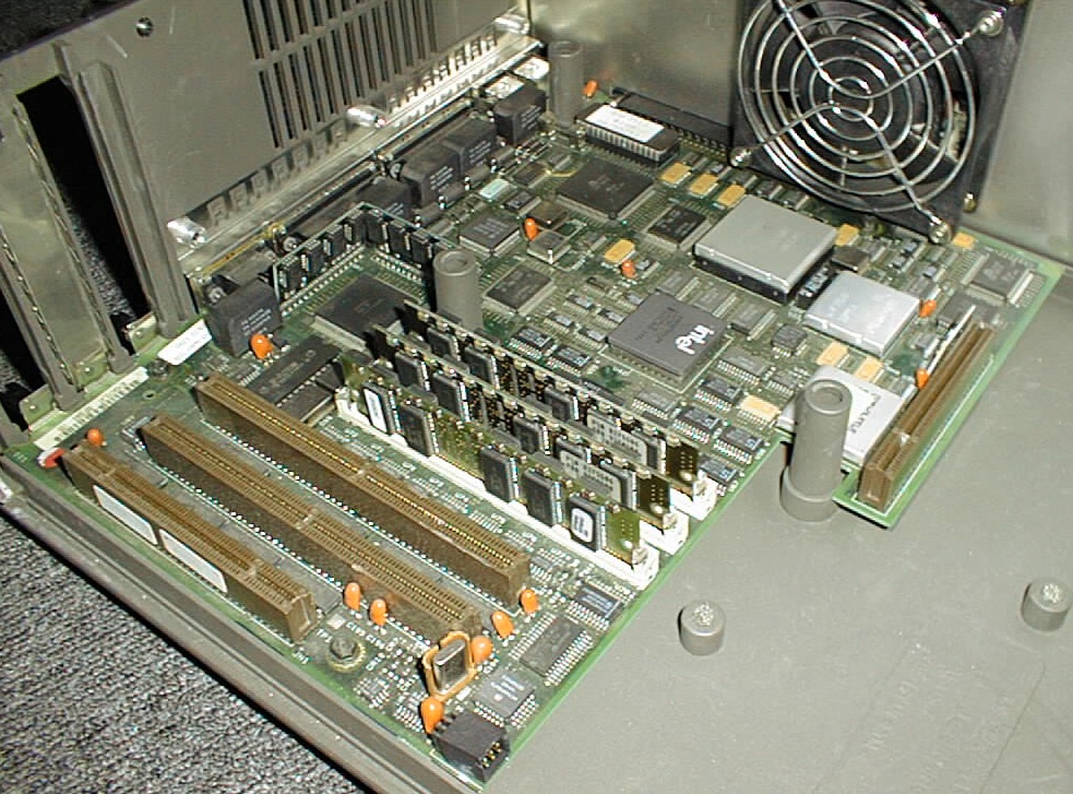 The integration of the 16/20 MHz model is similar to the 50Z: the planar board only occupies about half of the space the case offers. Once again, some vertically-mounted daughter PCBs help reducing the size of the main board. In detail, the following circuits were moved to daughter cards: