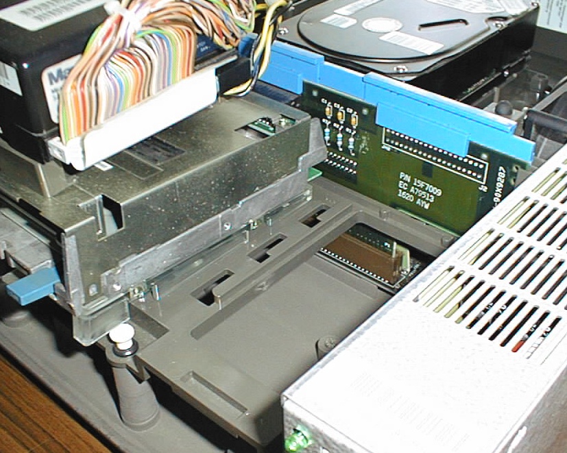 Mounting the drive is the second place where you will need to modify the hardware: The space behind the drive is extremely limited, and the floppy edge connector usually gives it the rest. It is virtually unavoidable to remove the edge connector from the floppy raiser card. There are a lot of variants to remove it, ranging from desoldering it with a professional Weller desoldering tool up to cracking it in pieces and unsoldering the pieces. I personally took a hot air gun and unsoldered it in one step. This operation needs a bit of experience since it is quite easy to destroy the PCB if it becomes too hot, but the advantage is that the connector remains in one piece, so there's a possibility to solder it back into place if you decide one day to restore the machine to its original condition. With the edge connector removed, there is now enough space for the SCSI interface connector, but a standard power connector is still too long. Try to get a power cable from a Model 80 or 95; they have ribbon-style crimped power connectors which are just flat enough to fit. Once these hurdles have been taken, the software setup is straightforward; copy the configuration file to your reference disk, run automatic configuration and you're done. Of course, SCSI disks are significantly more expensive than their IDE counterparts these days. Consider getting a used drive; drives in the range from 200..500 Megabytes are really cheap these days and provide a substantial upgrade to the max. 160 Mbytes of a DBA drive. Enjoy!