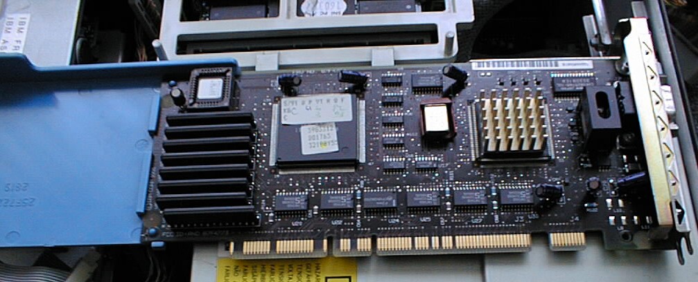 This is the XGA-2 Graphics Adapter, IBM's first Microchannel video adapter that was halfway competitive and offered eye-friendly refresh rates. The video logic is the same as for the XGA-1, but it has been shrunk into fewer chips so the card is only half length compared to the full-length XGA-1. Some XGA-2's therefore have an extra-length plastic handle to get again the full length... The clock generator is a synthesizer generator that can create arbitrary frequencies up to the DAC's capabilities (~80..90 MHz, depends upon the card's manufacturing date), allowing to adapt the video timing better to the monitor's needs. The XGA-1 only had four discrete oscillators for the 'standard' resolutions. A final improvement of the XGA-2 is that it allows to use 16bpp modes. Since the video memory and the maximum DAC clock are however limited, you won't get more than 640x480 at 16bpp...