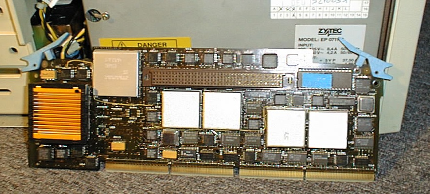 The Models 90 and 95 share the concept of a 'Processor Complex', a special card that carries the processor and a large part of the system logic like DMA and Synchrostream in later systems. All in all, there were five different types of complexes with several subvariants ranging from a 386DX20 to a Pentium-90. This is the so-called 'Type 1' complex with a 66 MHz DX2 CPU. The brown connector allows to add a 256Kbyte L2 cache module.