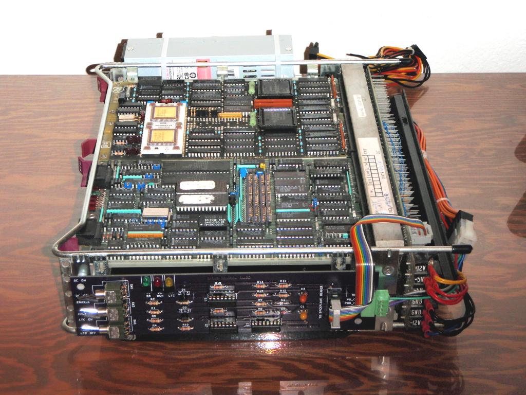 Since I have a naked backplane and card cage, I decided to mount the front panel board to the right side of the card cage on a set of nylon stand-offs, leveraging the existing mounting holes in the card frame. The switches would be right-angle models mounted at the front of the board, for easy access. The bus and power supply connections would be at the back.