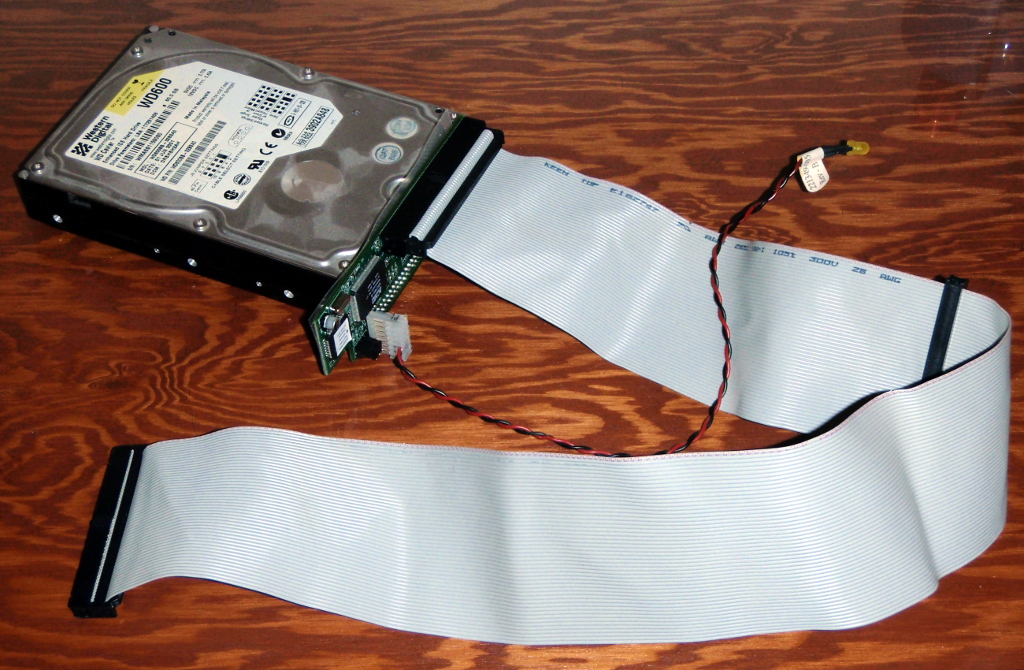 I began by purchasing an ACARD AEC-7720U Ultra SCSI-to-IDE bridge and using it with an old parallel IDE hard drive as my first drive. This particular bridge supports synchronous transfers at 20 MB/s on the SCSI bus and 33 MB/s DMA transfers on its ATA bus. The drive was a Western Digital WD600BB 60 GB drive from 2001. It was taken out of service years ago and still has some mileage left on it.