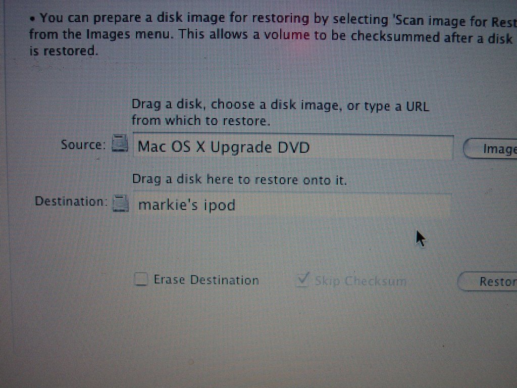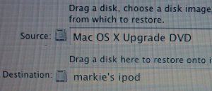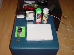 ...in the end by restoring the Tiger-DVD to my ipod and use that as a firewire startup-disk! (In the following picture you can also see my USB-drive which I’ve taken apart, to be able to connect a DVD-drive, to make it a DVD-USB-drive… it works brilliantly, only the ibook doesn’t want to boot from it)