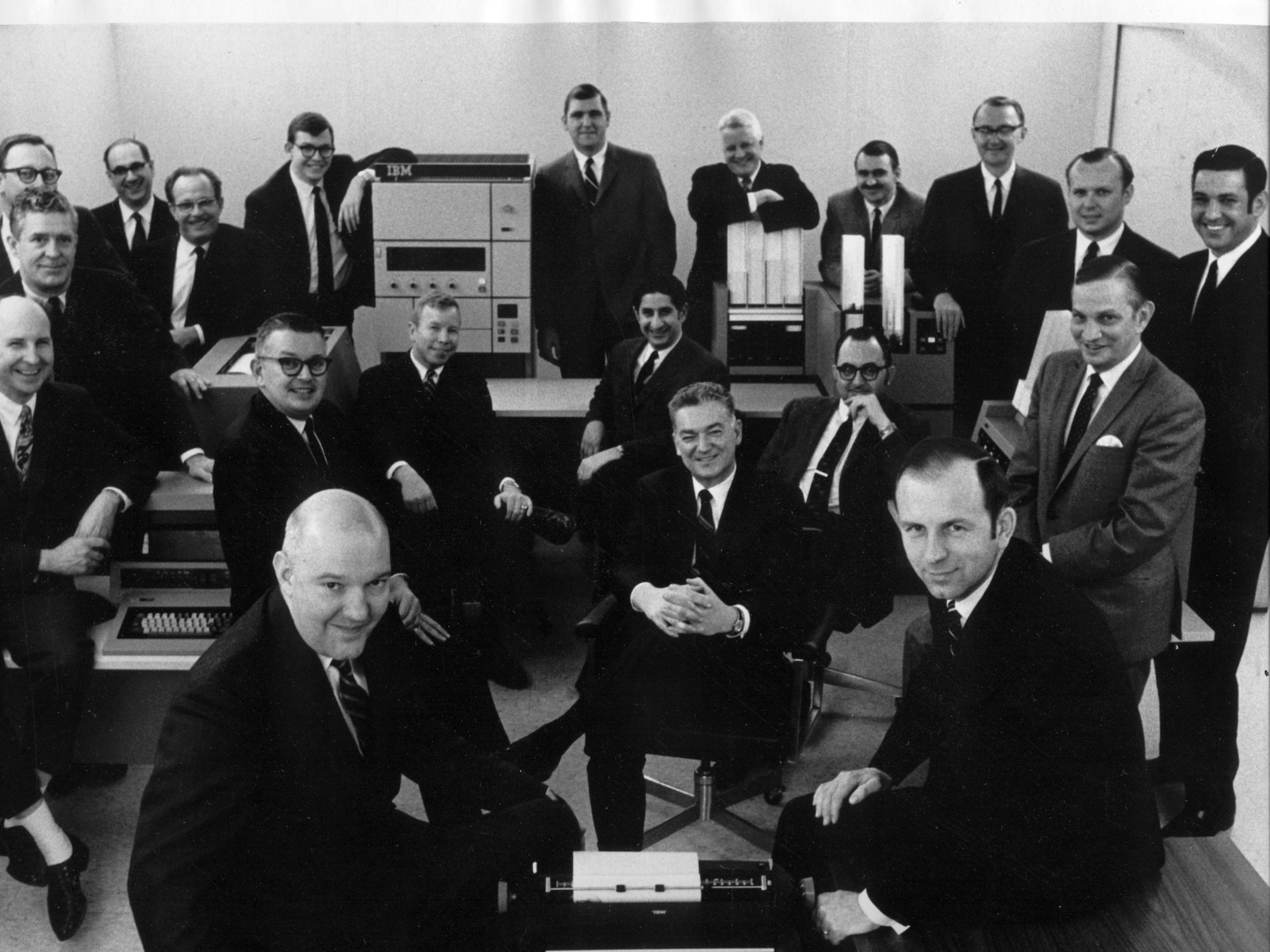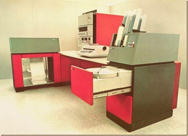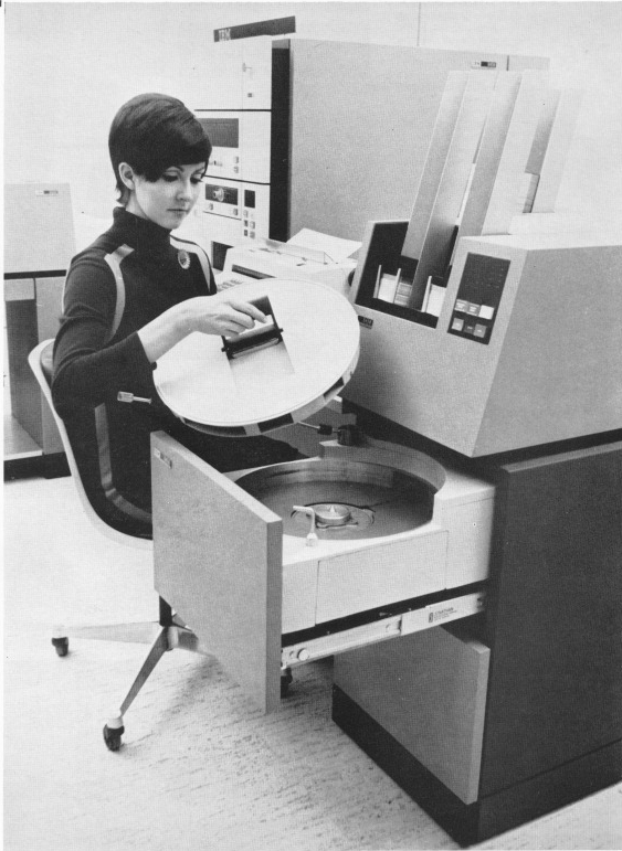 Engineering disk model 10   Lady holding a 5440 diskpack   Red model 10 with operator   IBM News & S/3 new 96 c card  Early announcement pictures