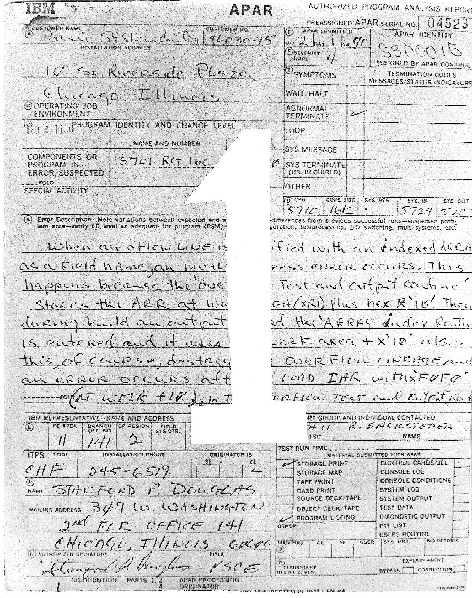 IBM S/3 first APAR The very first S/3 APAR (thanks Don)