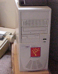I keep meaning to finish this machine and have never found the time to do it. This was supposed to have become my new "main machine" at home, but right now, it's running Linux and is processing SETI@home under the intel-linux client. It doesn't even have a floppy drive, and I loaded Linux onto it from a CDROM and then removed the CD drive from the machine. It only has 32MB of RAM, I'm supposed to buy more for it -- and a big HD, and a good video card and a few other things to build this into a nice machine. One day I'll get to it, but by the time I start to fix it up, it'll be "obsolyte"....