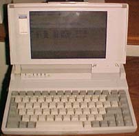 Toshiba was pretty much the first company I know of to build decent PC-DOS Laptops. And I mean decent. This sucker is well-built, having survived quite a few bangs, drops, and generally having been tossed all over. Of course, this machine is pretty old - it doesn't even have a hard drive. However, there's a 2MB RAM card that acts as 'D:', while a ROM containing DOS 3.30 is configured as drive C:. Drive A: is a 1.44MB floppy on the side. The screen is monochrome of course. There's a 2400baud modem also built in. Between the ROM, the RAM card, and the floppy, I manage to keep enough on it to make it very useful while on a long flight. The battery gives about 2 hrs of life to the machine before requiring a recharge - and yes, this is the second battery I've had on this machine, the original died years ago - and just would not accept another recharge.