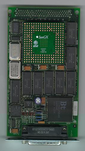 The TGX and TGX+ bear a large LSI chip and 8 RAM chips, and have the names of the design team printed above the SBus connector. While there have been at least two versions of the TGX, the chip rev number has not changed. The TGX+ can be distinguished by the characters TGXA printed next to the 13W3 connector, and by having a row of 8 very low profile surface-mounted chips down one side, compared with the larger chips in an L configuration on the TGX and GX.
