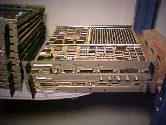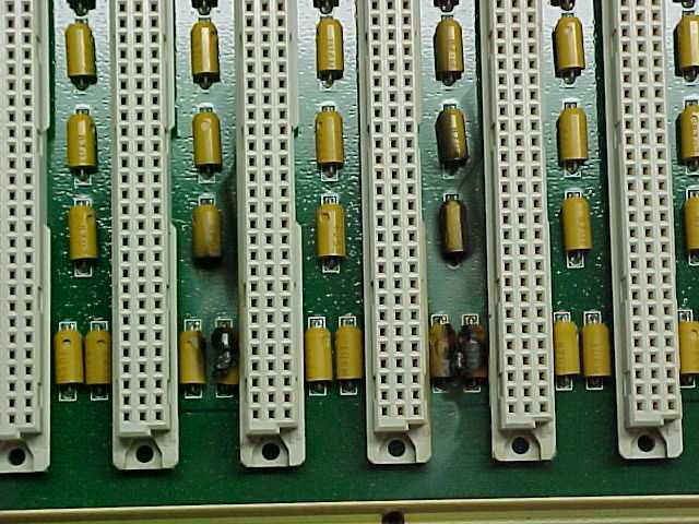 Here are the spare cards I have, and here are the damaged ones, and a shot of the burned up DC-DC converter on the 3/50 CPU card and the toasted decoupling caps on the CG3 framebuffer. The damage to the 3/280 CPU, and RAM board, isn't so apparent!