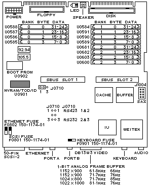 Click on this graphic of the motherboard for an alternate version which lists a few of the chips and their functions. It's pretty cool.
