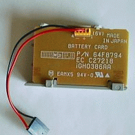 This is a 6 volt two-cell lithium pack. The original IBM ones are usually yellow, with black ends. Replacements are available as camera batteries; typical cost is about $10-$15. Equivalents are: