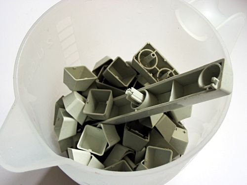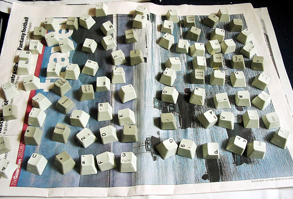 put the keycaps in to soak in hot, soapy water in the sink while I