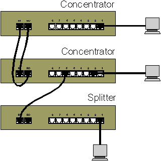 Concentrator/Splitter Allows to use the 8226 as a splitter when attached mode switch to another 8226 or as a concentrator. Instead of using a separate hub or concentrator port for each device you want to connect, you can attach the 8226 to an existing hub or concentrator port, set the switch on the front of the 8226 to "Splitter," and connect up to eight additional devices to the 8226