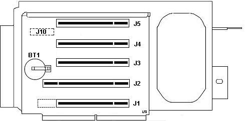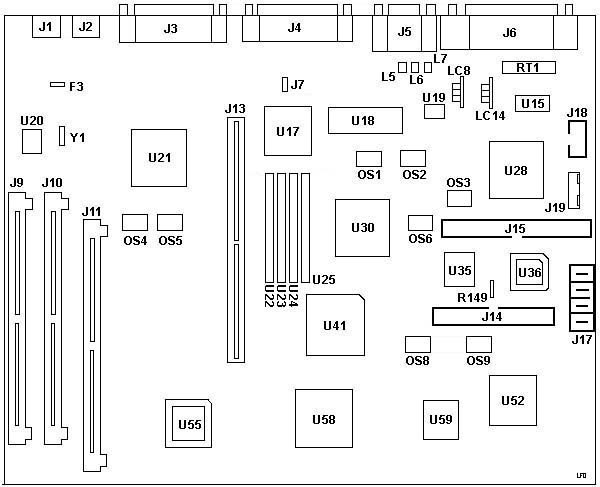 If you have a fantasy about swapping a Lacuna riser and planar into your 57SX, forget it. The Lacuna riser has two mounting slots where the screws are both horizontal, while the 57 has a vertical screw and a horizontal screw. The lacuna mounting holes at the front don't match. Dotted area on J1- solder pads for a BVE segment J10- Solder pads for a 16 pin header J2 AVE slot VRAM Functionality?