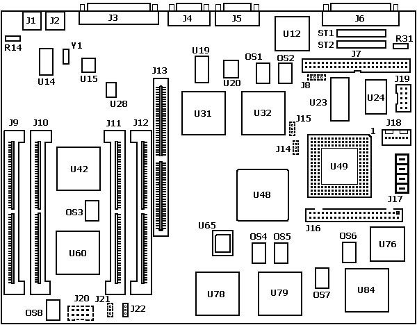 U76 This can be either the N82077AA (used on the 90 and 95) or it can be the National Semiconductor PC8477AV-2 floppy controller. A few systems have the 82077SL controller, PLUS U65 System EPROM 39G3299 is soldered directly to the planar (no PLCC socket needed) From Peter