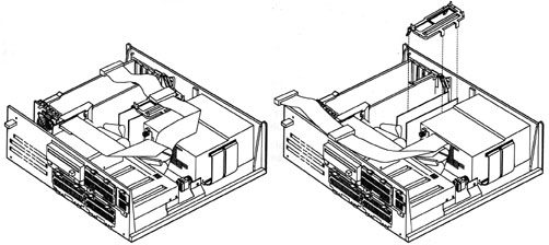 have to pull adapter cards to reconfigure RAM. I prefer the planar mounted