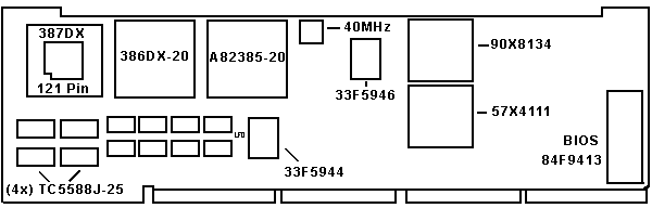 The 4 TC5588J-25 are the 64K cache for the 386DX-20.