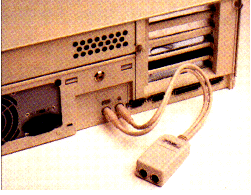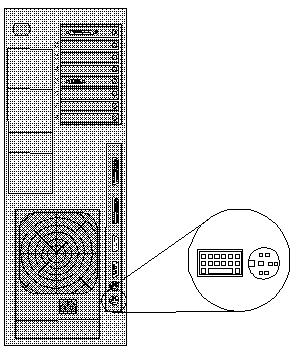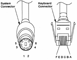 The keyboard and auxiliary-device connectors are 6-pin miniature DIN
