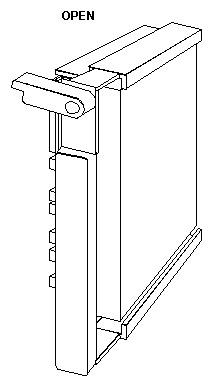 Install Hot Swap Drive a. Move the tray's knob to the open position. b. Position the drive tray assembly vertically, with the connector facing the rear of the server. c. Align the side of the tray with the raised guides on the bottom of the bay. (Note the arrows pointing towards the backs of the bays.) d. Slide the drive tray to the rear of the bay until it connects to the backplane. Be sure it is connected properly to the backplane. e. Move the tray's knob to the locked position. ![]()