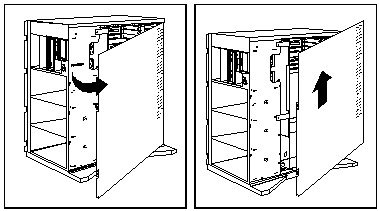 Pivot the side cover away from the front of the server. Remove the cover by carefully lifting it up and off the hinges.